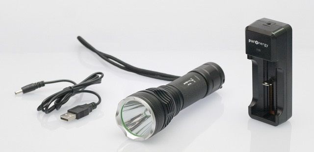 The PurEnergy MT C9S LED Torch is a black 10 watts, 1000 lumen hardware torch. It has 7 brightness modes including low, mid, high 1, high 2, flashes, strobe and SOS, is shockproof, waterproof, has a reverse polarity protection, patented heat dispersion, and features a throw distance up to 160 metres. It weighs 215g and its dimensions are 16 x 4.5 x 4.5 cm. The MT C9S Led Torch is complete with a rechargeable battery and charger.